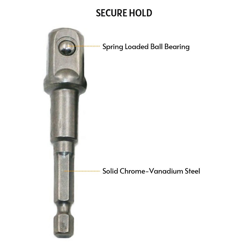 Spring-loaded ball bearing effectively fix the socket and avoid sliding.