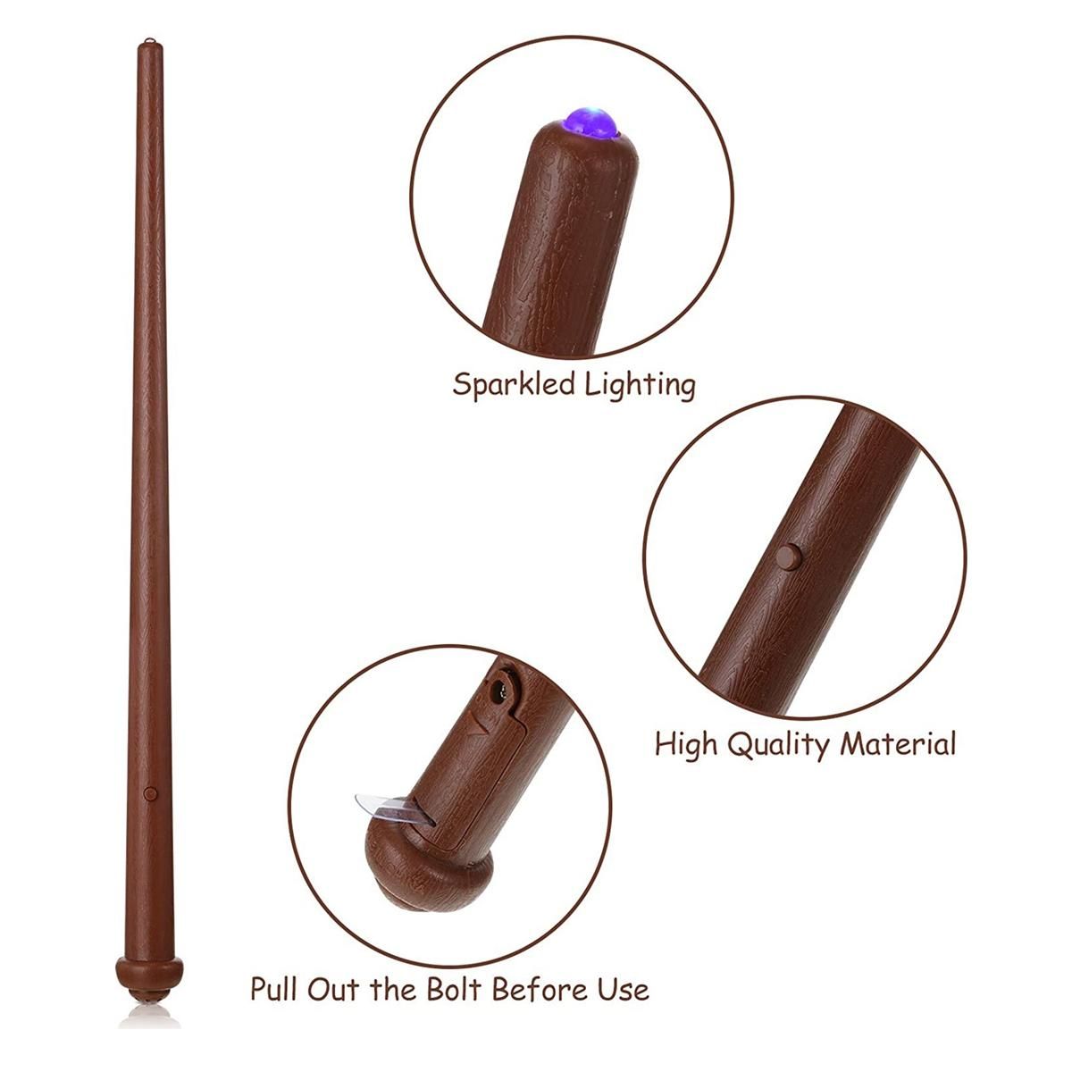 The wand is suitable for kids. Illuminating wands are perfect for parties, drama, cosplay, birthday, Christmas, and costume accessories Color: brownblack