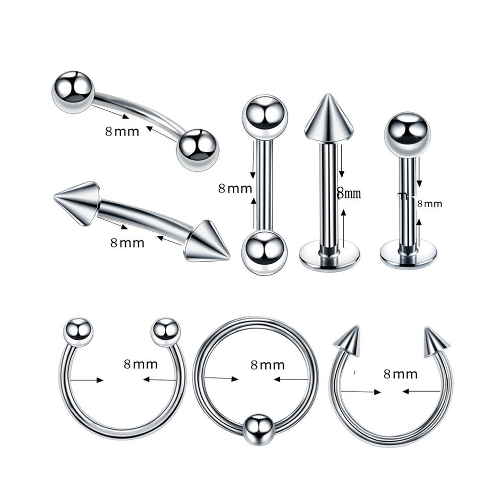 8 Piece Stainless Steel Lip Ear Ring Stud Body Piercing Jewelry Set