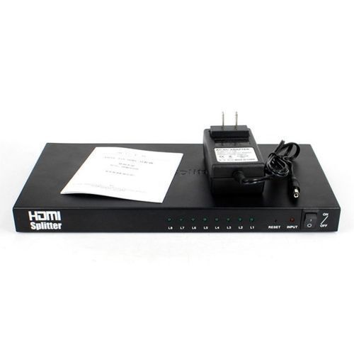 The 1x8 HDMI Splitter that supports Full HD 3D uses a single HDMI source,accessing to multiple HDMI sinks. The Splitter allows one HDMI devices to be split easily to eight HDMI compatible monitors or projectors. The Splitter can also be placed at the end of a long HDMI cable to regenerate the HDMI signal.