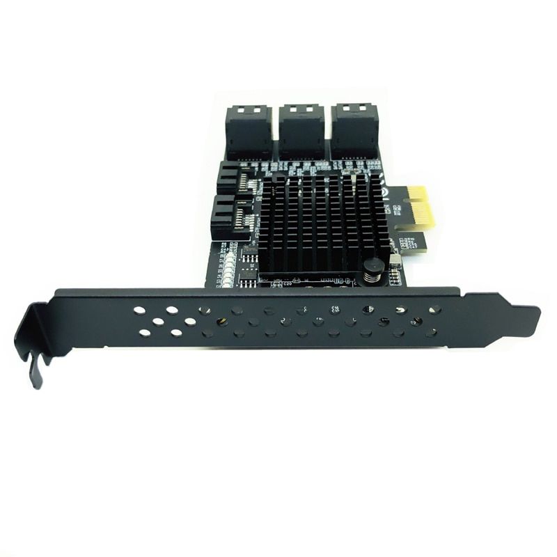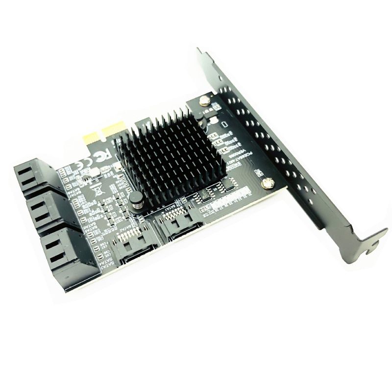 Specification: Marvell 88SE9215 set Ports: 8 SATA 6GB/s Ports Compliant with PCI-E Specification V2.0 and backward compatible with PCI-E 1.X Supports Native Command Queuing (NCQ) Compatible with SATA 6G, 3G and 1.5G Hard drives Compliant with PCI-E Specification v2.0 and backward compatible with PCI-E v1.x PCI Expre x1 Interface, and Compatible with PCI Expre x1, x2, x4, x8 and x16 Slots Marvell 88SE9215+JMicron JMB5xx set Supports 10TBhard diskdrives Non-RAID standard SATA controller