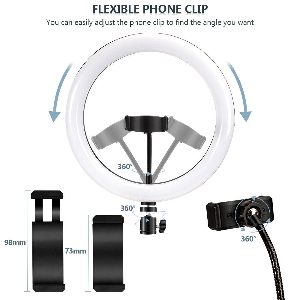 Multi-Functions: 2-in-1 design combines the phone holder and selfie ring light together, it is a professional tool for creating live videos/recording with smartphone or computer. Perfect extra light for make-up, live streaming, lay flat, selfie photos, filming, video recording, online teaching, dark scenery vlogging etc.