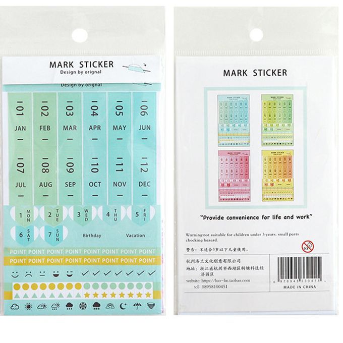8 Sheets DIY Paper PVC Monthly Calendar Index Tabs Reminder Stickers