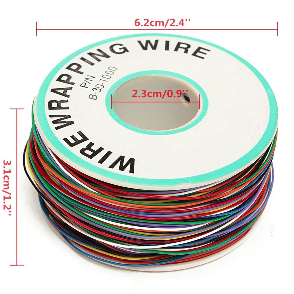 Specification:Type: 30AWG Model: P/N B-30-1000 Material: Tin Plated Copper, Plastic Size: 6.2cm x 3.1cm/2.4'' x 1.2'' Total length: 250m/9842.5'' Outer diameter of single core wire : 0.55mm Diameter of Copper core: 0.25mm Temperature resistance: 80 degrees