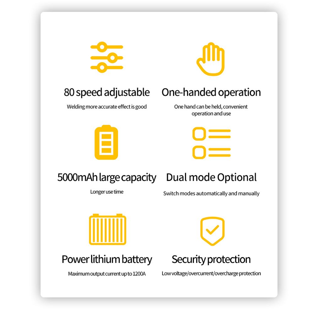 80 Gears Adjustable: Dual pulse output, high power output design, 80 gears of output power adjustable, more accurate welding, suitable for continuously welding thousands of points on nickel/nickel-plate sheet.