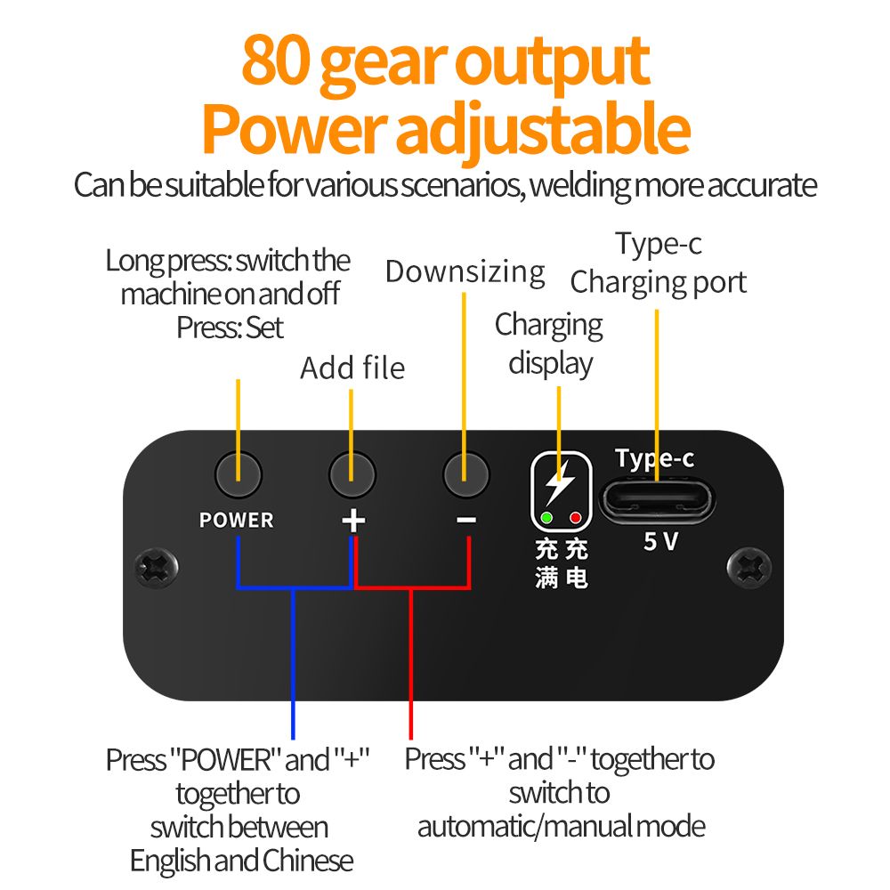 Digital Display: With the OLED color display real-time gear display function. Support system mode display, remaining power display, preheat display, time delay display, welding progress bar gear display.