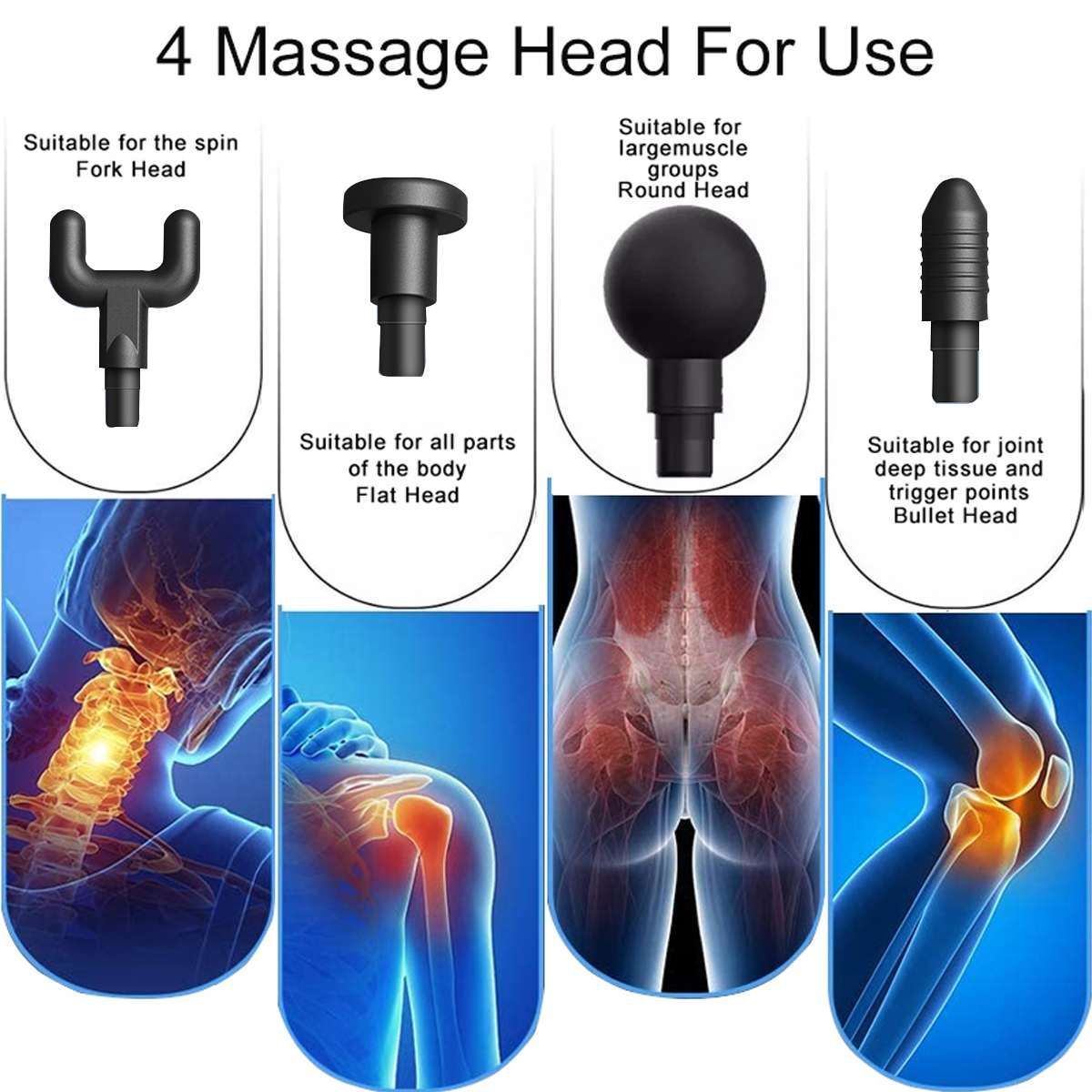 Features: [DEEP TISSUE MASSAGER GUN] 5 speed modes , every minute sends high-speed pulse of preure to your muscle tiue, This maage gun helps for relieves tight muscles, sorene, promote blood and lymph circulation. LCD touch screen allows you easily change the speed as you wish [4 REPLACEABLE MASSAGE HEADS] Comes with 4 customized maager heads allow you to reach every muscle, providing a targeted maage head for each muscle, which will provide you a different relaxing maage experiences [SUPER QUIET MASSAGE TOOL]Brushle motor and unique quite glide noise reduction technology that brings high power but low noise (35dB - 55dB) experience . you can use it at home, gym, office, etc