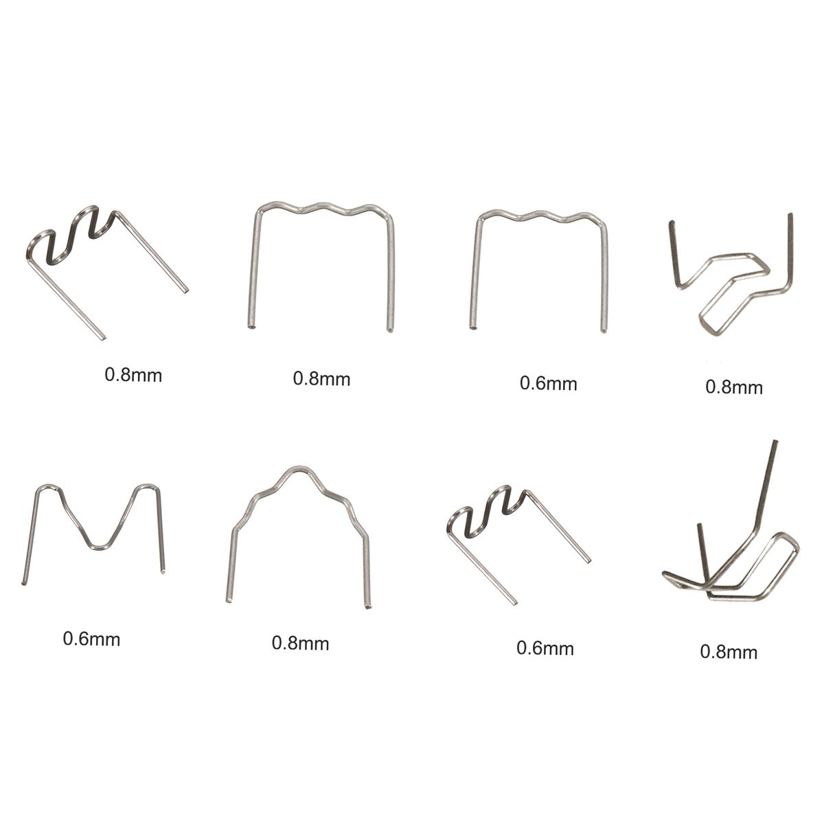 Style: 100x 0.6mm flat staples, 100x 0.8mm flat staples, 100x 0.8mm B-01 outside corner staples, 100x 0.8mm B-02 outside corner staples, 100x 0.6mm outside corner staples, 100x 0.8mm wave staples, 100x 0.8mm corner staples, 100x 0.6mm wave staples.