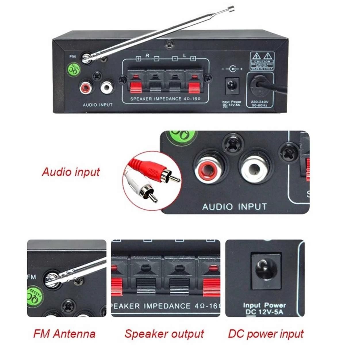 - Available remote control to adjust the volume, sound selection, elections track, station and other functions. No need to walk in front of the amplifier to debug, very convenient