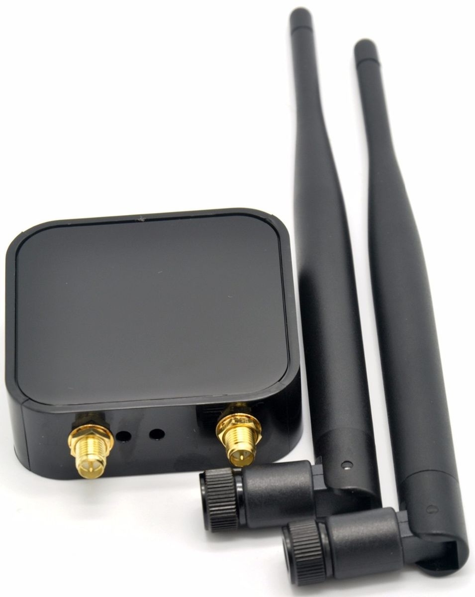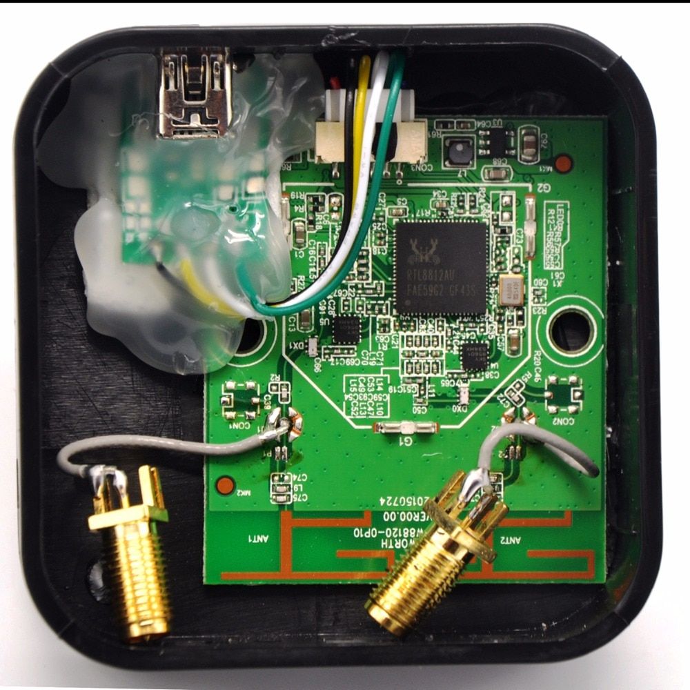 Chipset: Realtek RTL8812AU ( the module Removed from Huawei Coocaa A55 TV ) Standards: IEEE 802.11 b/g/n/a/ac Bandwidth: 20MHz/40MHz Data Rates 802.11a: 6, 9, 12, 24, 36, 48, 54Mbps; 802.11b: 1, 2, 5.5, 11Mbps; 802.11g: 6, 9, 12, 24, 36, 48, 54Mbps; 802.11n: Support PHY rate up to 300Mbps; 802.11ac: up to 867Mbps 2.4GHz up to 300Mbps + 5.0GHz up to 867Mbps Frequency: 2.4GHz, 5GHz LED: None Antennas: Detachable 6dBi antenna x 2 Operation Frequency: ISM band 2412~2483.5MHz, 4915~5825MHz (Detail frequency range depends on country region) Operating System: Windows XP 32/64, Windows 2000, Windows 7 32/64, Windows 8 32/64, Vista 32/64, Windows 10 32/64, Linux (Kali\ubuntu\Aircrack_ng), B-T5, MAC OS v10.4/10.5/ 10.6/10.7/10.8/10.9/10.10 * We do not offer technical support for Mac OS and Linux. Security: WEP 64/128, WPA/WPA2 (TKIP, AES); WAPI; WPS/WPS 2.0: PIN, PBC Interface: USB 2.0 Type A (Mini USB) Dimention: 61.0 x 61.0 x 19 mm (LxWxH) Weight: 44.2 g/ 0.097 lb (Adapter Only)