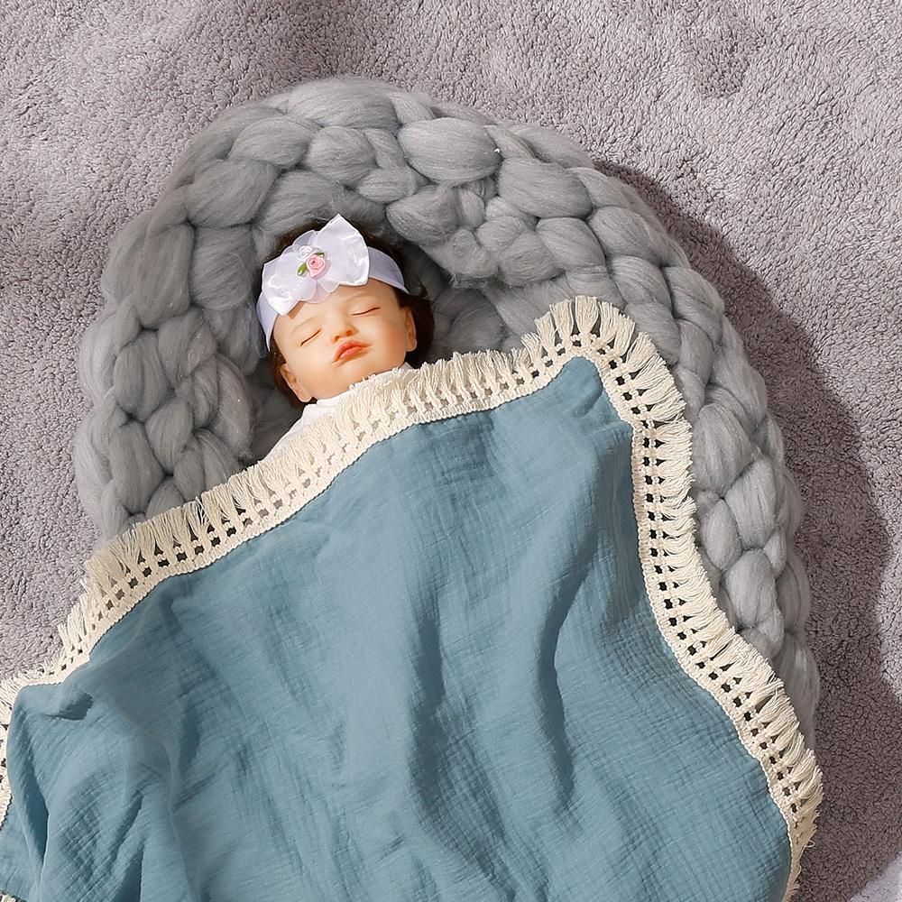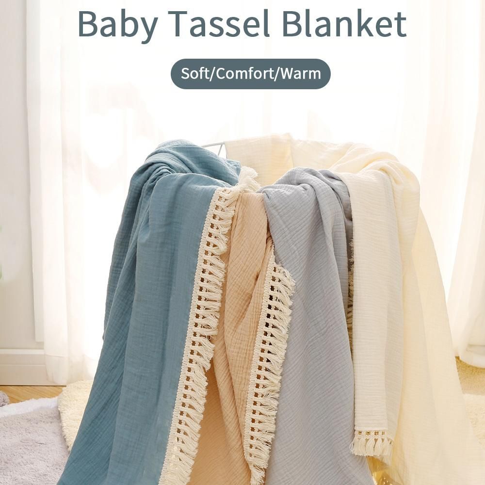 Buy 80*65cm/ 31.5*25.6in Comfortable Baby Muslin Blanket Soft Newborn Baby Swaddle Blanket Skin-Friendly with Beautiful Tassel Decoration Receiving Blankets for Baby Boys Girls in Nigeria