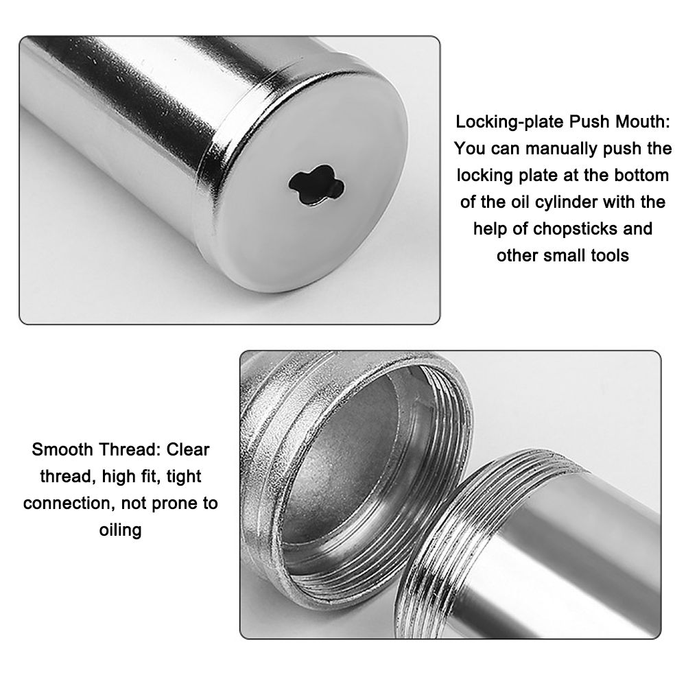 80CC Alloy Grease Barrel: Thickened oil resistant barrel wall, 80CC large capacity design, no need for frequent refills.