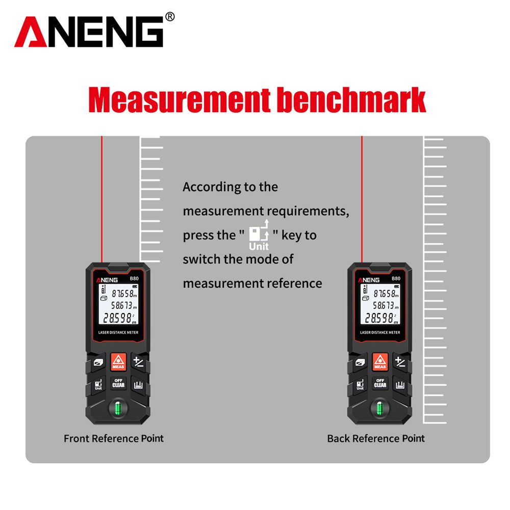 This laser distance meter is of mini size and multiple purposes. It can measure distance, area, volume and Pythagorean quickly. Digital LCD display with backlight makes it easy to read. It also supports front or back reference point according to the measurement requirements. Battery operated, mini and lightweight, it's easy to carry.