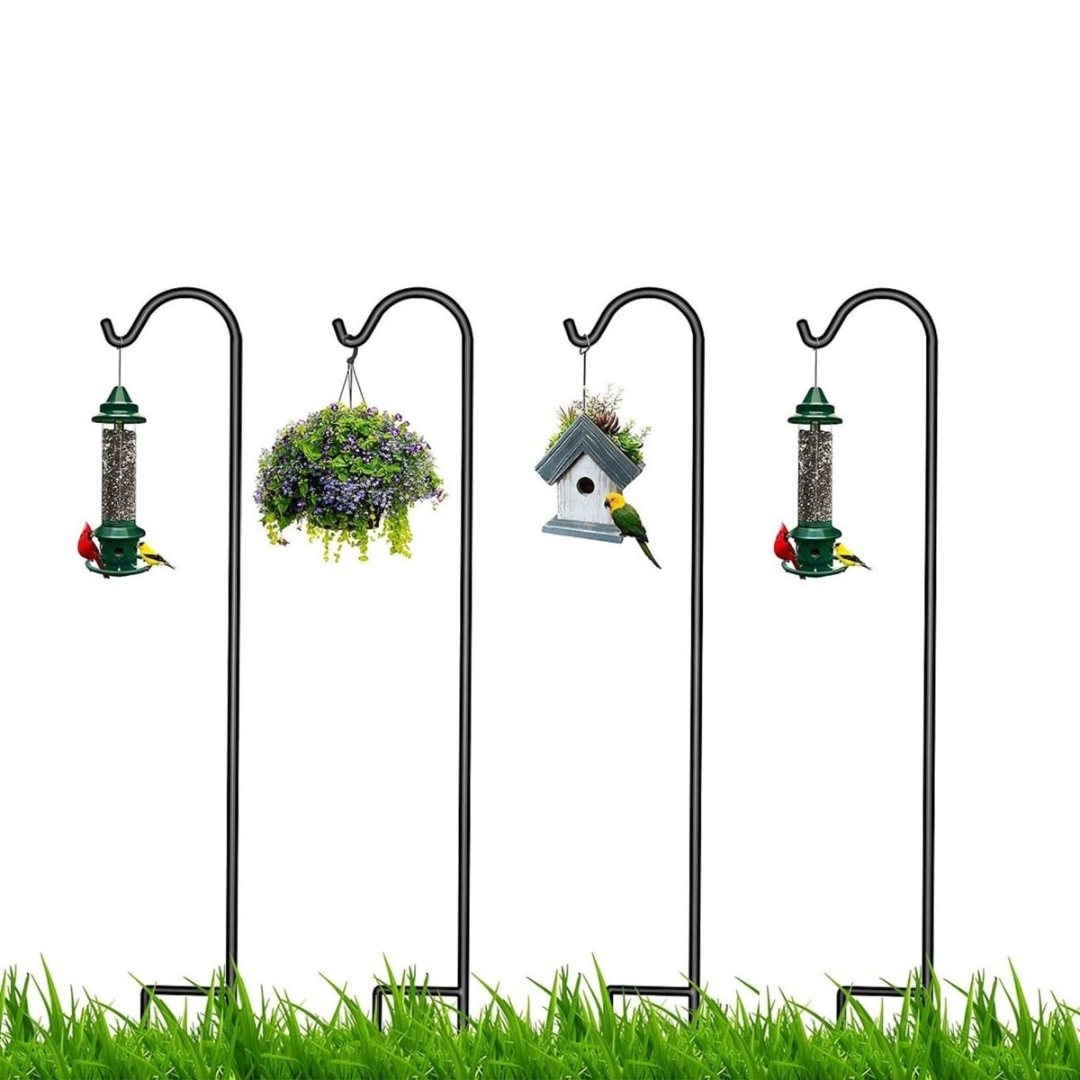 Feauture3:multiple shepherd hooks bird feeders