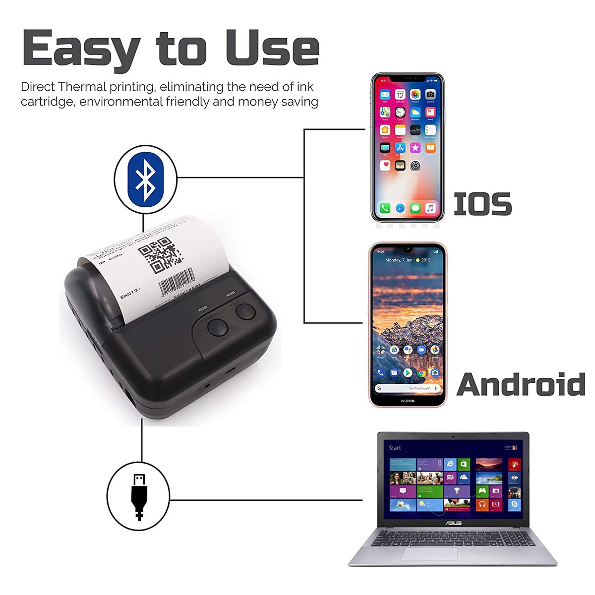 USB and BT connection, support edit with "DLabel"(software or APP), support ESC/POS command, compatible with Windows XP/7/8/10, Android, iOS.