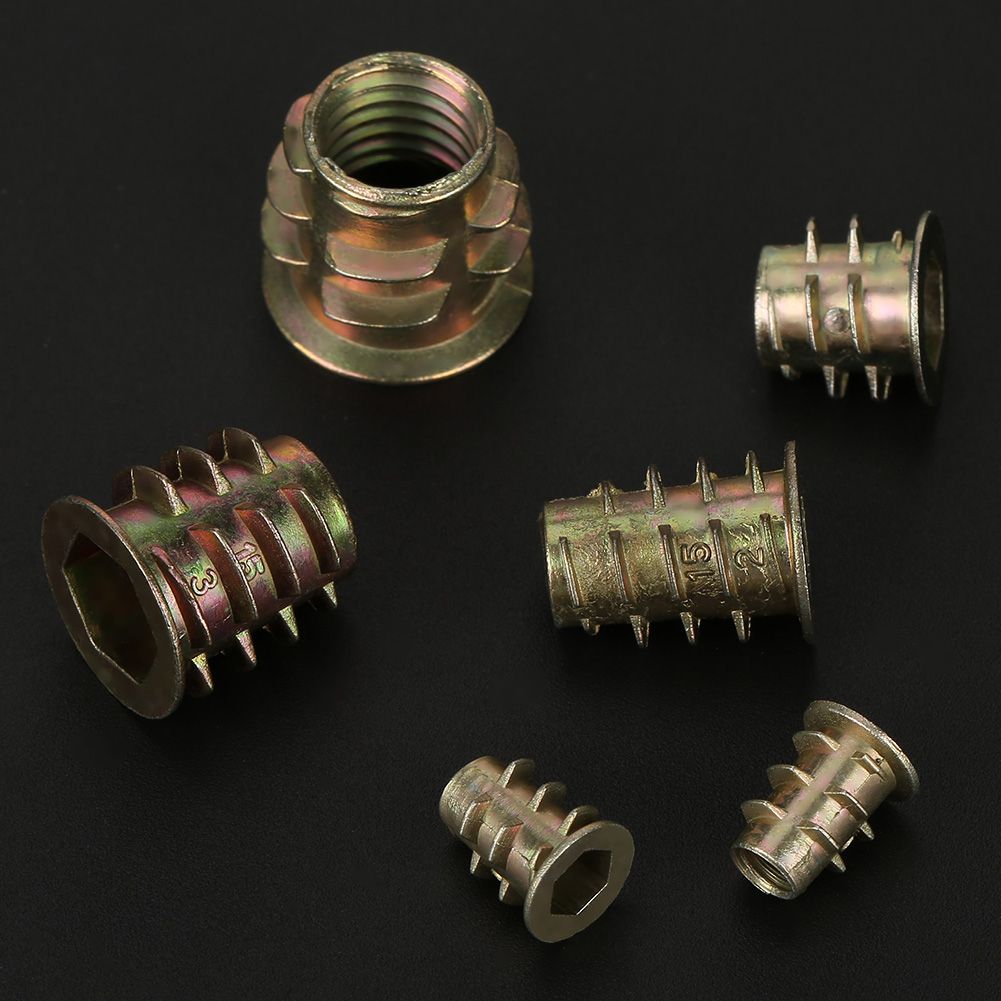 This set of screw-in insert nuts come in different sizes and take different screw sizes.