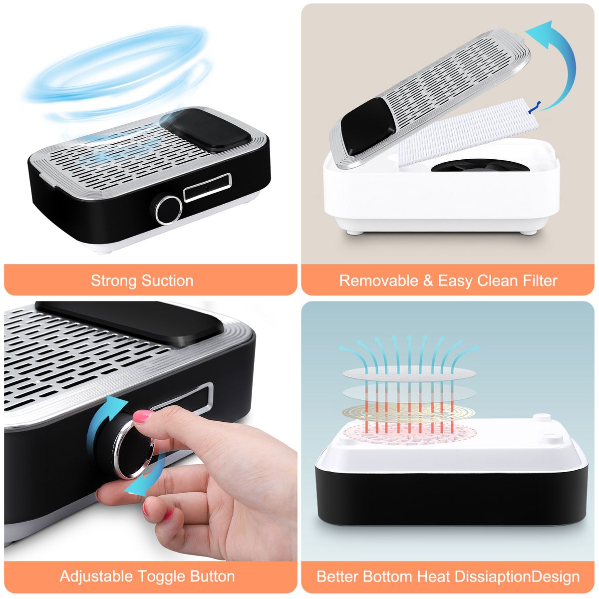 Collecting dust while filing or polishing nails without flying dust ash for user-friendly and eco-friendly.