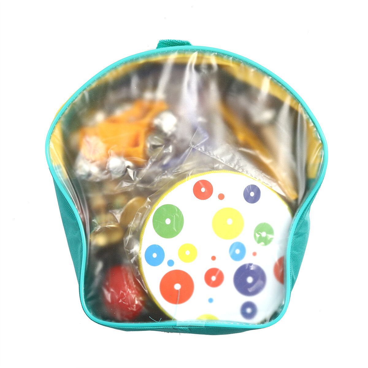 【19Pcs/Set B】: 1*Xylophone, 1*Tambourine, 1*Handbell, 2*Maracas, 2*Wood sounder, 2*Handle sleigh bell, 1*Small sleigh bell, 1* bell stick, 1*Triangle bell, 2*Wrist bell, 2*Shaker egg, 2*Finger castanet, 1xTone block, 1*Kazoo, 1*Storage backpack
