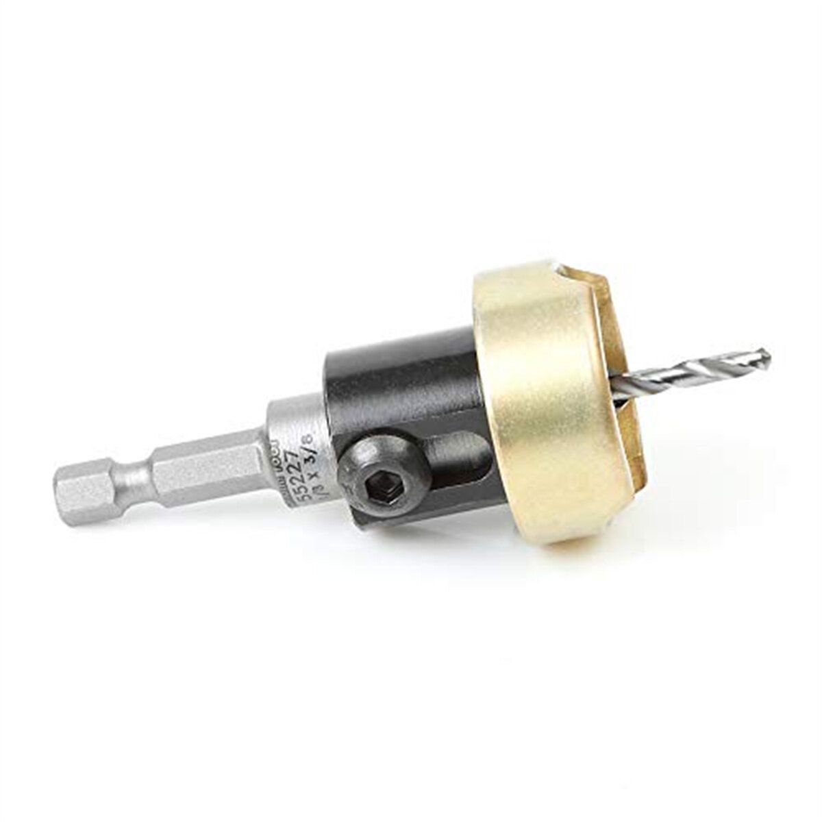 ▲ An adjustable, heavy-duty, revolving depth-stop with a strong thrust ball bearing for quick and easy adjustment of the countersink depth without scratching or burning surfaces.▲ It also has an open space to allow for chip evacuation. The user friendly design enables control of the drill length and its replacement, without the need to disassemble the depth-stop. Enables users to drill a pilot hole and tapered Countersink in one step.▲ The adjustable depth-stop and independent stop collar prevent marking of the workpiece and perfect Countersink depth control, (A deg;) angle 49 deg;, (B) Cutting height 3/64-3/8, (D) diameter 3/8, (D) shank 1/4, overall length (L) 2-5/8, wood screw size 4, D1 3/32. Carbide tipped 82 degree countersink with adjustable depth stop and no-thrust ball bearing 3/8 dia x 3/32 drill DIA x 1/4 inch quick release hex shank.