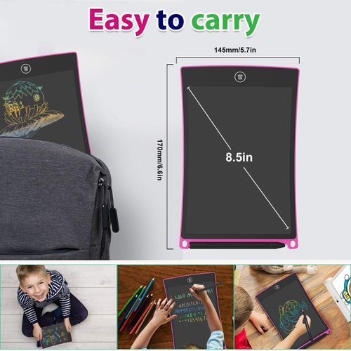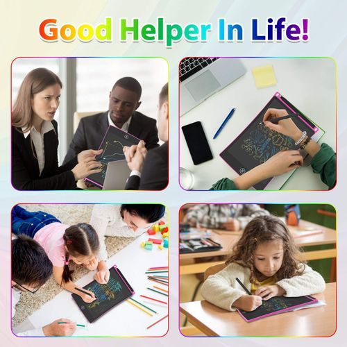 8.5 Inch LCD Writing Tablet Colorful Screen Doodle Board Electronic Digital Drawing Pad with Lock Button for Kids Adults 2022About this item:[Easy way for writing and drawing]: our LCD Writing Board with one button delete, paperless and dustless,environmental friendly, you can write down your ideas anytime.[Rainbow Colors and Brighter Lines]: The colorful drawing pad uses the Newest LCD pressure-sensitive technology, and the lines and brightness of the coloring tablet are thicker and brighter than many writing board on the market.[Environmentally Friendly and Durable]: The electronic drawing tablet is made of LCD material, no blue light, no radiation, anti-fall. The electronic writing tablet itself is not self-luminous, and the LCD material relies on the reflection of external light to display the content.[Safer Battery Setting]: This kids drawing pad, we added a screw on the back side of the battery, which is safer for kids aged 3+, you dont need to worry about them swallowing unknown parts.[Great Gift]: This LCD doodle pad are easy to carry, great for cars, airplanes, restaurants and on the go. Easily fits in a briefcases, school bags or backpack without the mess of crayons, markers.LCD Writing Tablet!focus on manufacturing products for writing. Such as this LCD writing pad and Reusable Smart Notebook.We make full checking before shipping, to ensure every pad is good. So, dont worry about the quality, we have checked every pc for you.This LCD sketch board is the upgraded version colorful writing board. Its with 50% more brightness.Good Helper in Life - LCD Writing Tablet1) The kids drawing board can be used for children to doodle, draw, write, count and so on to improve their imagination.2) As a family message board, leave messages for your relatives.3) As a shopping list, you can clearly understand your needs.4)Working people can also be used as working memorandums.5)Deaf-mute people can communicate better.How to use our GUYUCOM LCD Writing Board?1)Pull out the pen and write directly in the writing area.2)Press clear button and wait 2 seconds before writing again.3)If it cannot be cleared, please replace the battery.4)When replacing the battery, take out the battery cover to replace.For the first time use, please put the lock button to unlock position.Note: Before using this drawing tablet , please make sure the battery cells are installed properly, and press Erase Button to clear the surface.8.5 Inch LCD Writing Tablet Colorful Screen Doodle Board Electronic Digital Drawing Pad with Lock Button for Kids Adults 2022