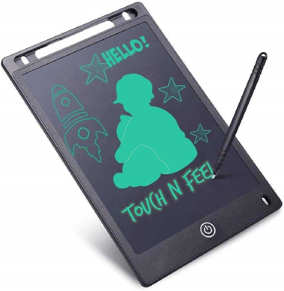 8.5 Inch LCD Learning Writing Graffiti Tablet For KidsDESCRIPTION:Develop the Child's Right Brain Effectively: As we all know, the right brain is the creative brain, and doodle is the the first critical factor to develop the child's right brain. The kids drawing tablet can be used to doodle, express emotion, unleash imagination and stimulate creativity, so PROJOY LCD writing tablet is the best choice for developing the right brain of children. Note: Comes with exquisite stickers and practical magnet.Eye Protection Color Screen & Easy Operation: Toddler doodle board equipped with 8.5 inch LCD color screen, no radiation, no glare, no eye irritation. It adopts the latest LCD pressure-sensitive technology that creates lines of different thicknesses depending on how hard you push with stylus. The one-click erase button only takes one second to empty the screen content. The lock key preserves the contents of the screen until you unlock it, also prevents you from accidentally clearing the screen.Eco-environmental & Mess- free:The doodle pad can be recycled up to 100,000 times, avoiding wasting paper and contributing to the protection of forests. It comes with a built-in battery that lasts up to 12 months without charging or plugging in. Unlike crayons, chalks and watercolors, which are messy and difficult to clean, the drawing board is ink-free and won't stain clothes and hands, it can keep your home no mess and help you solve the trouble of cleaning.Portable and Durable:The electronic drawing pad is made of high-quality ABS material. Thanks to the rounded corner design, it can not only protect the kid's hands from being scratched, but also achieve the effect of anti-drop and shock-proof. It weighs only 136 grams and is only 1/3 inch thick which is convenient to carry, kids can enjoy drawing anytime and anywhere, it is the best companion for road trips, plane trips, camping and any other outdoor activities.WARNING: Avoid using in the following conditions:- The ambient temperature changes sharply- Above high temperature- Under low temperature - Under he strong light- Under ultraviolet light - In the dusty environment Avoid contact with sharp objects or sticky surface of the screen to prevent damage; avoid dropping the product on the ground; avoid the product by the strong impact of other objects.