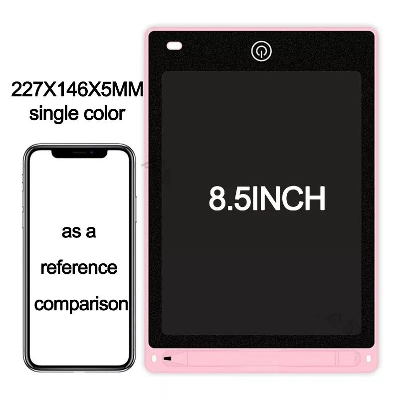 8.5 and 12 Inch LCD Drawing & Writing Tablet for Smart Kids Educational ToysDESCRIPTION:Develop the Child's Right Brain Effectively: As we all know, the right brain is the creative brain, and doodle is the the first critical factor to develop the child's right brain. The kids drawing tablet can be used to doodle, express emotion, unleash imagination and stimulate creativity, so PROJOY LCD writing tablet is the best choice for developing the right brain of children. Note: Comes with exquisite stickers and practical magnet.Eye Protection Color Screen & Easy Operation: Toddler doodle board equipped with 8.5 and 12 inch LCD color screen, no radiation, no glare, no eye irritation. It adopts the latest LCD pressure-sensitive technology that creates lines of different thicknesses depending on how hard you push with stylus. The one-click erase button only takes one second to empty the screen content. The lock key preserves the contents of the screen until you unlock it, also prevents you from accidentally clearing the screen.Eco-environmental & Mess-free:The doodle pad can be recycled up to 100,000 times, avoiding wasting paper and contributing to the protection of forests. It comes with a built-in battery that lasts up to 12 months without charging or plugging in. Unlike crayons, chalks and watercolors, which are messy and difficult to clean, the drawing board is ink-free and won't stain clothes and hands, it can keep your home no mess and help you solve the trouble of cleaning.Portable and Durable:The electronic drawing pad is made of high-quality ABS material. Thanks to the rounded corner design, it can not only protect the kid's hands from being scratched, but also achieve the effect of anti-drop and shock-proof. It weighs only 136 grams and is only 1/3 inch thick which is convenient to carry, kids can enjoy drawing anytime and anywhere, it is the best companion for road trips, plane trips, camping and any other outdoor activities.WARNING:Avoid using in the following conditions:- The ambient temperature changes sharply- Above high temperature- Under low temperature - Under he strong light- Under ultraviolet light - In the dusty environmentAvoid contact with sharp objects or sticky surface of the screen to prevent damage; avoid dropping the product on the ground; avoid the product by the strong impact of other objects.