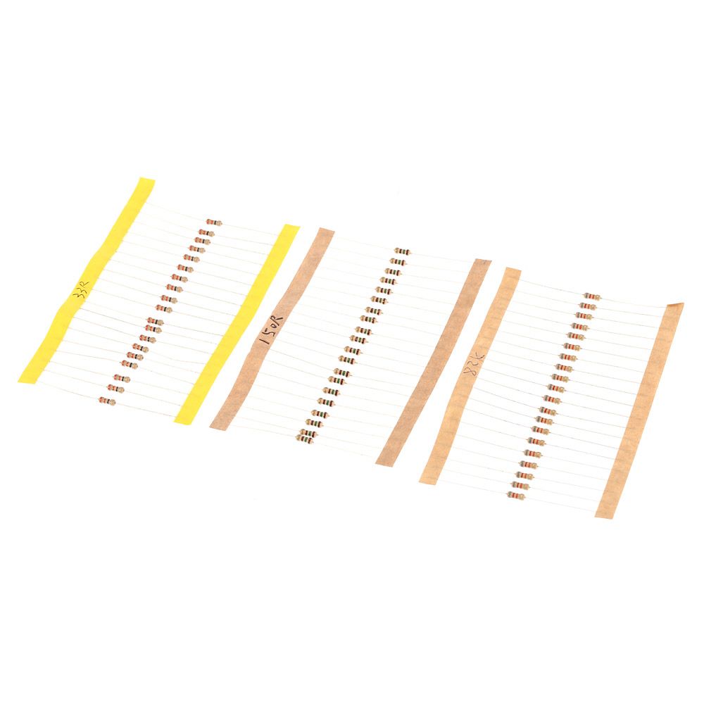 100Ω, 150Ω, 200Ω, 220Ω, 330Ω, 470Ω, 510Ω, 680Ω, 750Ω, 820Ω,