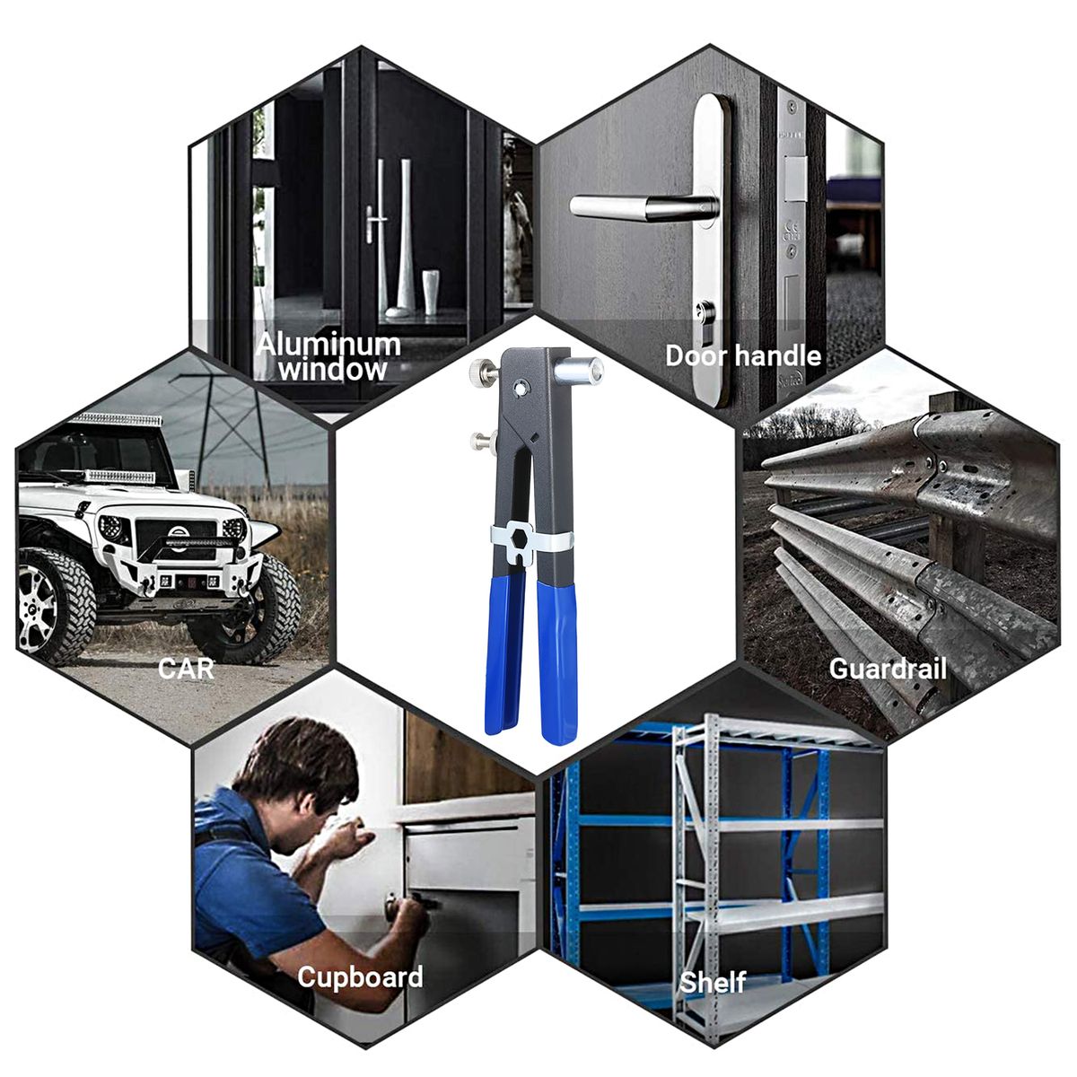 EASY TO OPERATION -- Just drill a hole in the workpiece, assemble the appropriate rivet nut onto the tool, insert it into hole, squeeze and then complete. Especially perfect when the surface in question is too thin to be tapped, or access to the backside is limited.