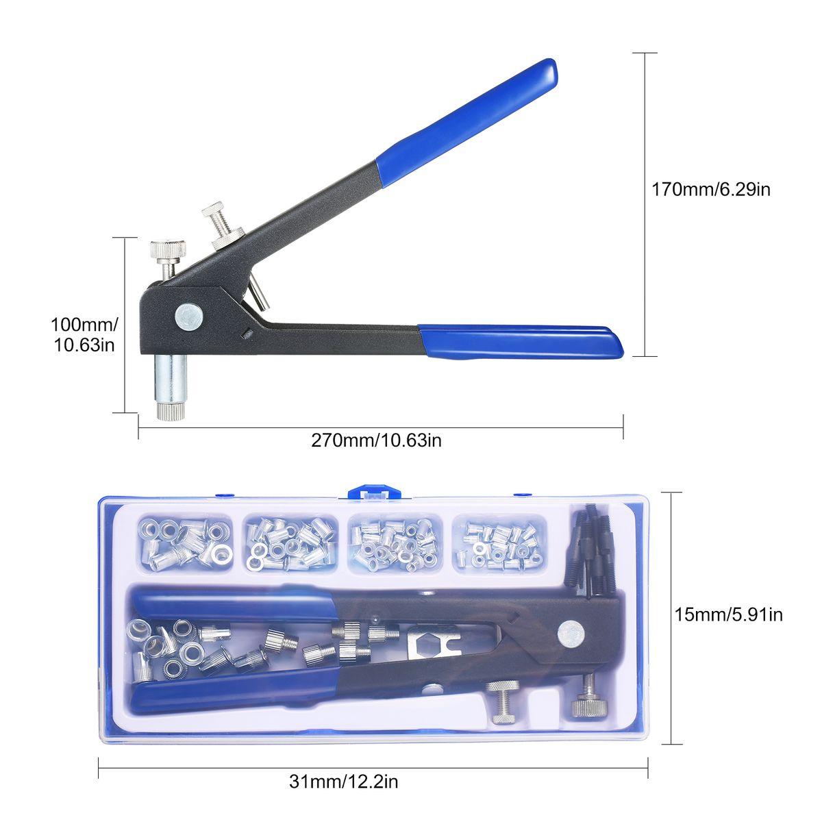 Riveter Size When Closed: 270 * 100mm / 10.63 * 3.94 inch