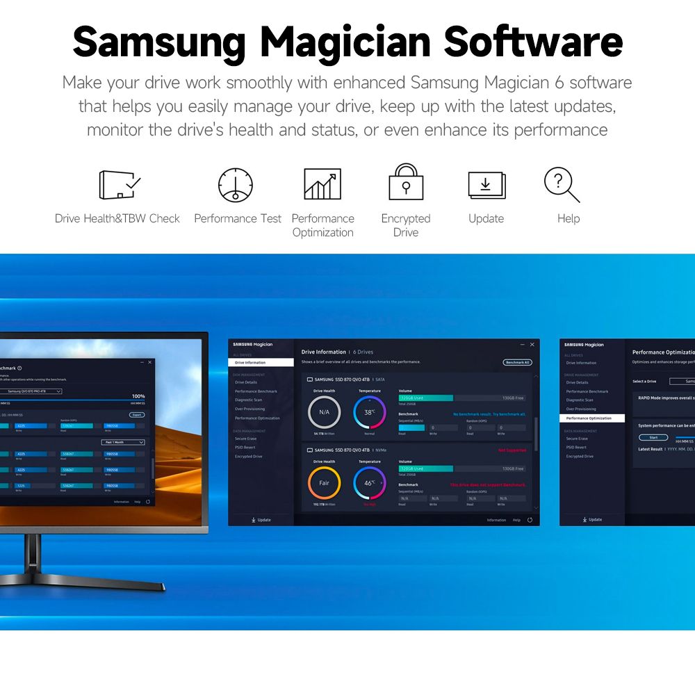 - Make your drive work smoothly with enhanced Samsung Magician 6 software that helps you easily manage your drive, keep up with the latest updates, monitor the drive's health and status, or even enhance its performance.