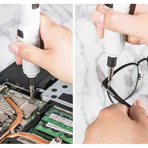 This is a 88 in 1 electric screwdriver set, this 88 bits included is made of chrome vanadium has a hardness of 55-60HRC. The Electric Screwdriver Tool Kit head is magnetic, with good quality assurance and operability. The screwdriver is equipped with anti-static tweezers for efficient and comfortable work. Comfort and ergonomics with floating rear spin-cap, a grippy rubberized over mold that tolerates greasy hands. The screwdriver itself is equipped with a magnetic tip, useful for both pulling screws out and for lining them up with the hole, and the flexible extension rod allows you to adjust the length of the screwdriver depending on the size of the object you're working on. The screwdriver heads are magnetic, made of impact-resistant tool steels, solid as chrome vanadium steel, and they can tighten the screws during repair, which improves performance and saves your time and effort. Come with a magnetic screw memory mat for disassembly and reassembly of screws in a convenient and effective way. Size and type printed on box easy to grab the right tool, easy-to-see tip identifiers placed right on the top, easy to identify. Each magnetic tip driver does a great job holding screws in place. These precisely machined bits fit properly into the screws and protect both the bit and the fasteners from damages. The portable screwdriver set includes 1 small screwdriver, 56 precision bits,19 other necessary screwdriver accessories and it comes with a usb cord as it's an electric screwdriver and it's rechargeable. The b3 is long lasting and can stand for hours if charged fully, it works on a 3.6v. This electric screwdriver set makes work much more faster than normal screw set because the heads moves on their own compare to when you have to move it yourself Come with a magnetic screw memory mat for disassembly and reassembly of screws in a convenient and effective way. Well-built handy toolbox - best gift for fathers & men in festivals