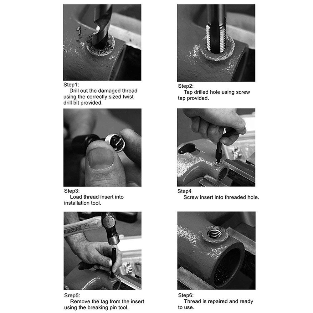 Suitable for M6, M8, M10, creates a stronger internal thread in soft metals and protects tapped threads against wear and damage.