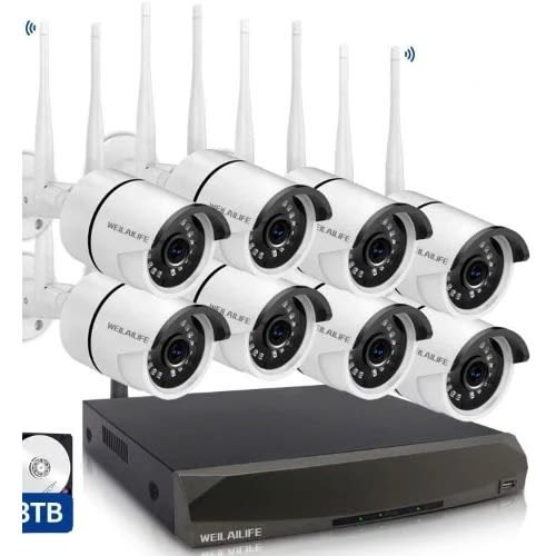 This wireless wifi NVR CCTV system comes fully packed with 8 weatherproof HD cameras for both outdoor and indoor installation. It is completely wireless because there is no wire connection between the DVR and the camera units. The signal transmission is by wifi network and 5.8ghz frequency signal. The system is viewed by smart phone and also through bigger LCD screens or TV screens with the HDMI or VGA ports.It is a multi user system, this means that more than 2 or more people can configure the system to their various mobile phones to view the location footages.View, record, picture and save your locations from anywhere and anytime worldwide under a very high definition transmission.A great security and surveillance wireless CCTV system for homes, offices, warehouses, stores and super marts, etc.