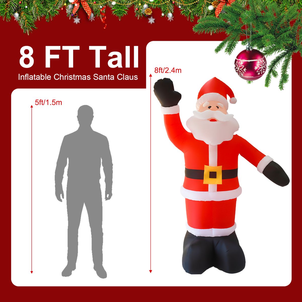 【Durable and Waterproof】: This 8FT inflatable Christmas Santa Claus outdoor decoration features a IP4 waterproof design, allowing you to confidently display it in your yard or garden even during rainy weather. The high-quality 190T polyester cloth materials used ensure its durability, making it a long-lasting addition to your holiday decor.