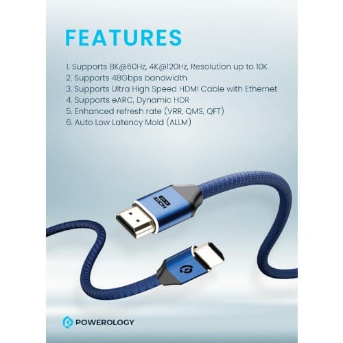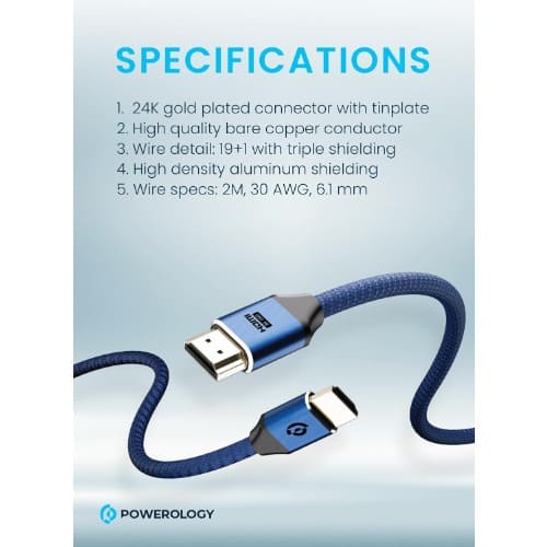 Buy 8K HDMI Braided Cable 2m - 24K Gold Plated Connectors - 10K Resolution / Dolby Atmos / eARC in Nigeria