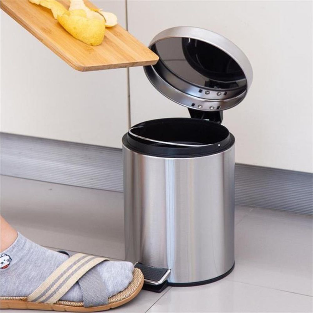 Brush Stainless Steel Shell --- Shell is made of thicker high grade stainless steel and inner bucket is PP plastic, durable, anti-rust and easy to clean. A very compact small size step dust bin, great for kitchen, bathroom, living room use.