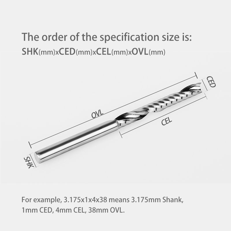 1*8mm 10mm 12mm Shk 1 Flute Spiral Mill Cutter China