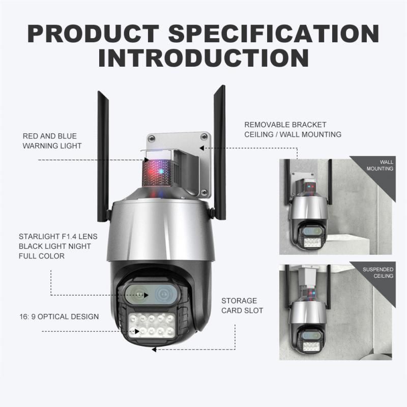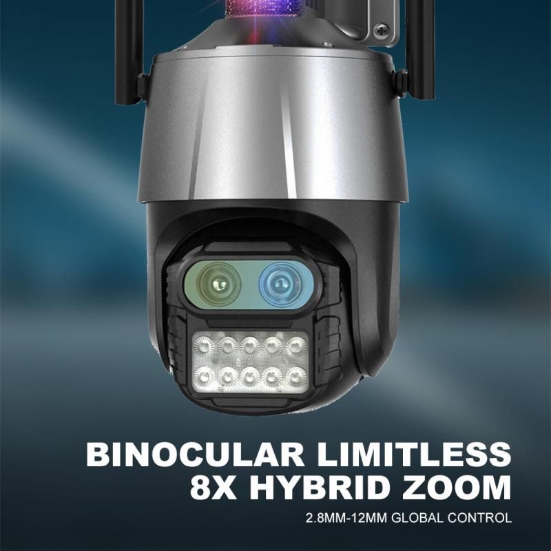 8MP WIFI IP Camera Audio CCTV Surveillance Outdoor 8X Digital Zoom Night Full Color Wireless Waterproof SecurityDescription:* 8MP 4MP Resolution Option* APP:icsee* AI human detection* Red blue light alarm* 2.8mm 12mm Dual lens camerasystem* Switch 1X to 8X Digital Zoom Instantly* Max 100 meters Day Vision* 10~50 meters Colorful/Black White Night Vision* Enhanced dual antenna penetration ability* Pan 300 degree/ Tilt 100degree* Two-Way Audio Talk Speak Real Time* Motion Detection and Alarm Tone Function* 2.4Ghz WiFi and Wired Connection two Mode* AP Hotspot Mode Access* Waterproof IP66 Use for Outdoor* TF Card Slot Support Max 128 GB.* Encryption security cloud storage* Remotely View via the App iCSee on SmartphoneSpecifications:Dual Lens Outdoor Camera2.8mm 12mm Dual-Lens to see long Distance.Better Choice 8MPThe camera is equipped with 2 pcs 4MP lens, 8MP camera = Two 4MP Lens.Dual Lens & 8X Zoom8X Zoom = 4X optical zoom 4X digital zoom; 2.8mm lens switching to 12mm lens will be 4X optical zoom, Per lens provide 4X digital zoom. Remote ControlRotates 270° Horizontally and 100° Vertically, You can control it in the ICSEE app directly whenever you want and wherever you are.Moving Auto trackingAfter locking the target, the camera will adjust the pan rotation automatically, Tracking Moving Objects, Cars, Pets, Human, and push alerts notifications to your Smartphone.IP66 Waterproof / DustproofThe camera case is made of high-quality ABS plastic, which is waterproof, sun-proof and dust-proof. It is suitable for any environment.Package Included:1x Camera1x User Manual1x Power Supply1x Screws Bag