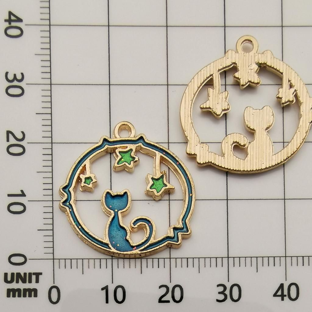 8 pieces moon star colorful oil dropped charms with golden smooth frame (8 styles)