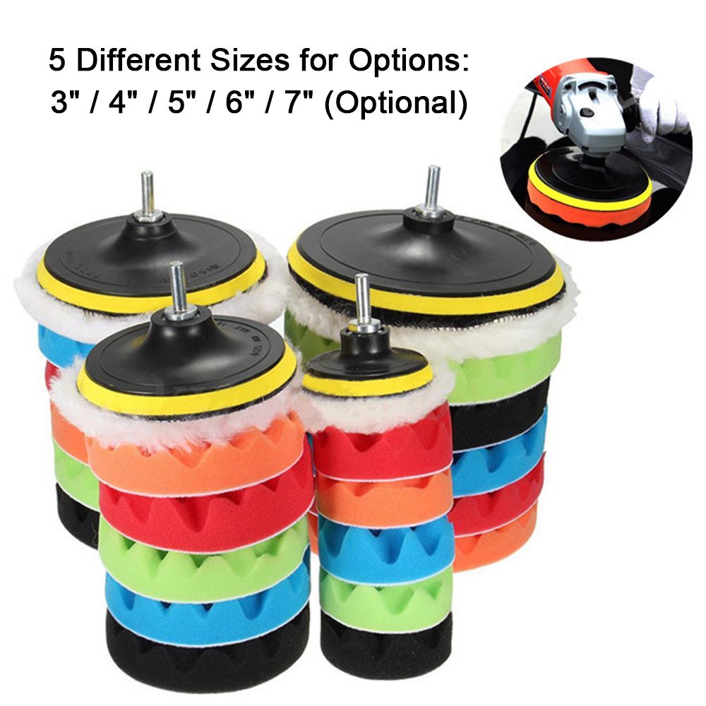 PROFESSIONAL SPONGE PADS and WOOLEN BUFFER: 5 sponge pads with different colors and softness, suitable for polishing rough and small areas.