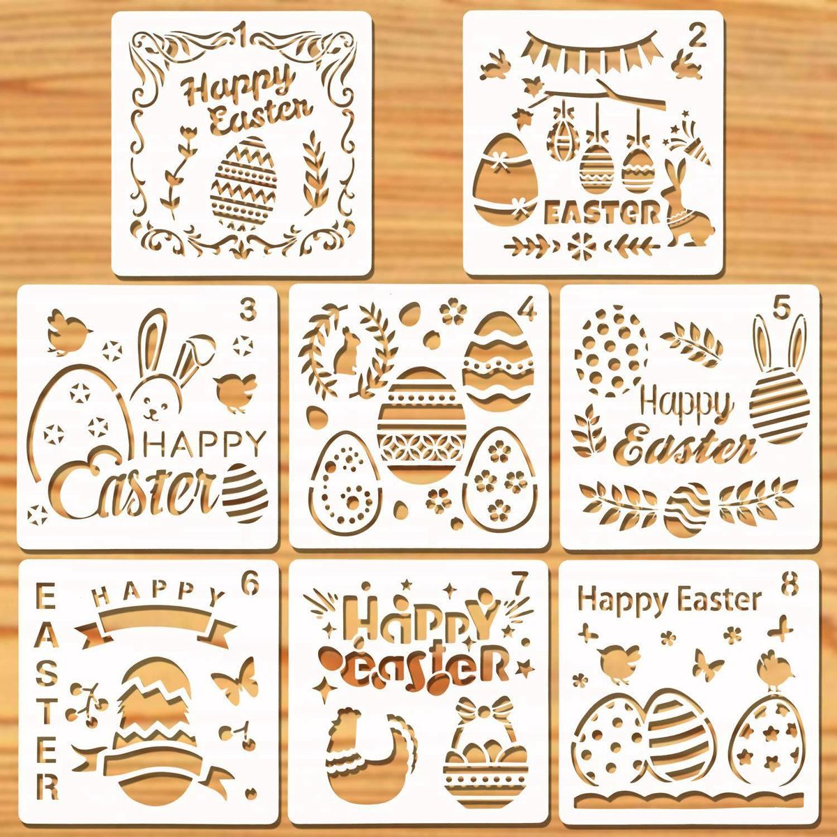 8Pcs Easter Template Sets Washable for Painting CraftsMade of soft plastic material to ensure the inside and outside edges of journals stencils is not sharp, safety to you and your kids.