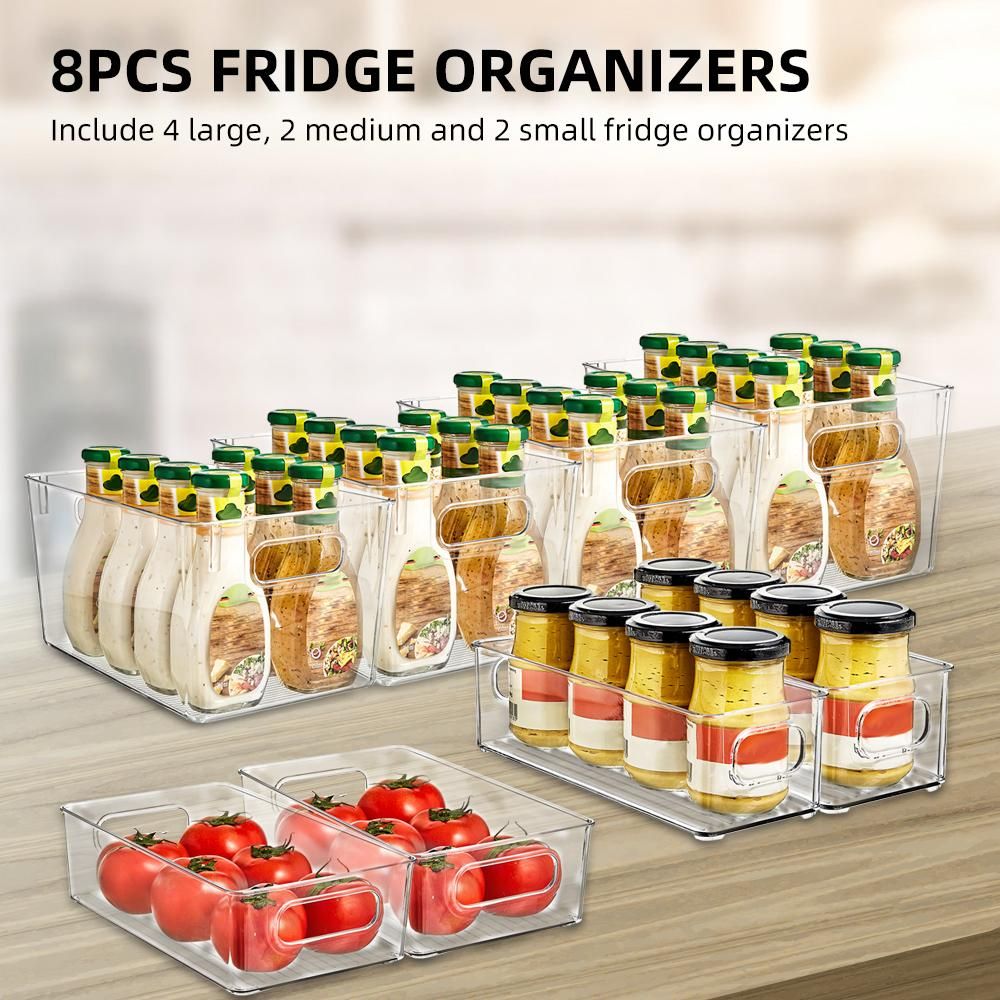 Buy 8Pcs Fridge Organizer 4 Large 2 Medium 2 Small BPA Free Fridge Organizer Set with Handle PET Transparent Stackable Suitable for Cabinet Fridge Bathroom in Nigeria