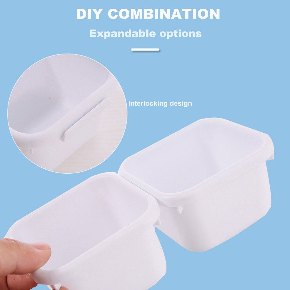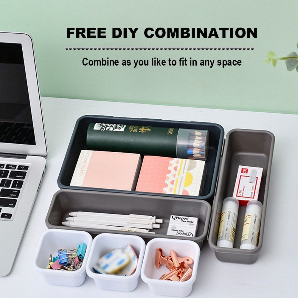 It features an interlocking design for stackable and versatile storage to fit in any space. Just rest assured to place kitchen utensils/stationery/office supplies/sanitary s/other small s.