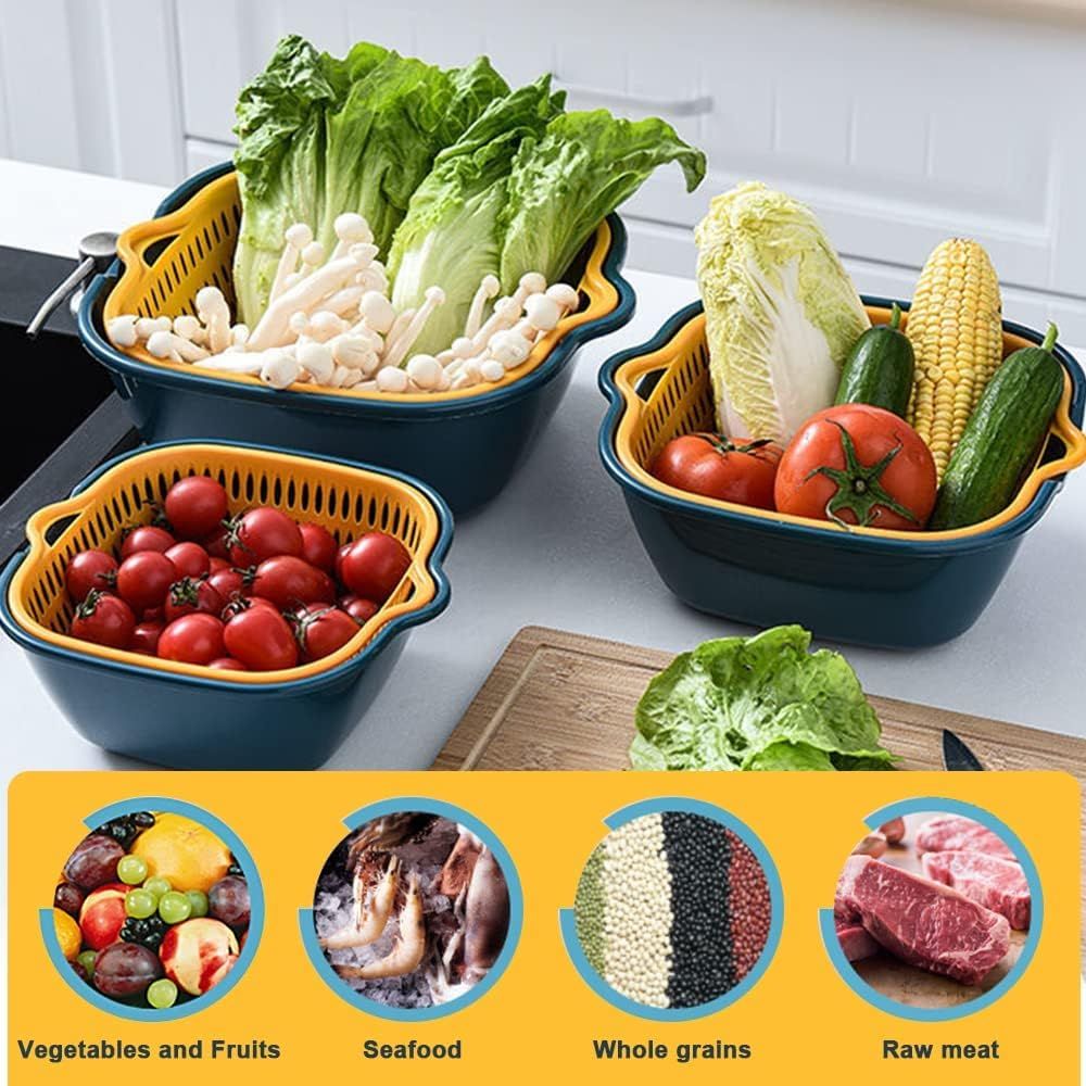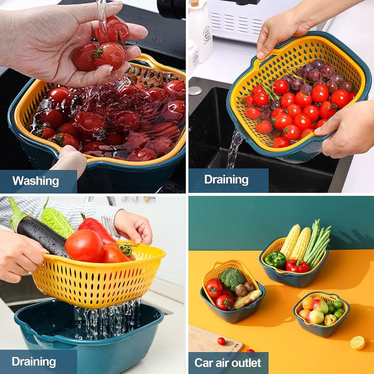 - Unique Design: This product is removable and easy to use for different purposes. When not in use,the 6 pieces together to save space.And the bottom drain basket also could be used as a lid or bowl to keep fruit flies away. It's a great kitchen assistant.