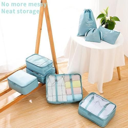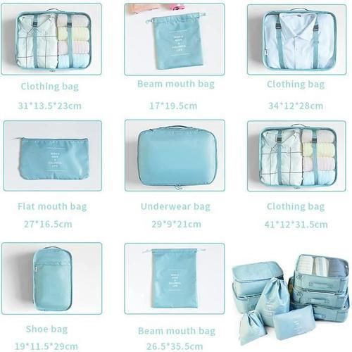 ❤8 pcs packing organizer: 3 pockets + 1 pocket + 1 shoe pocket + 2 ball pockets + 1 flat pocket to separate clean and dirty clothes, wet towels, washing tools and cosmetics; Use special bags to store shoes; Protect your clothes from folds, dust and damage.