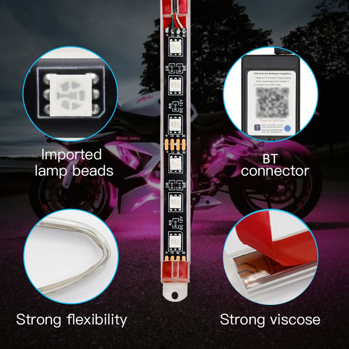 Features:Multiple Colors: The motorcycle LED light kits supports 16 million colors, and you can choose according to your preferences, making your motorcycle unique. Each light strip can emit 150 ° ultra wide angle light. You can DIY your own unique color scheme to create a comfortable and romantic atmosphere.