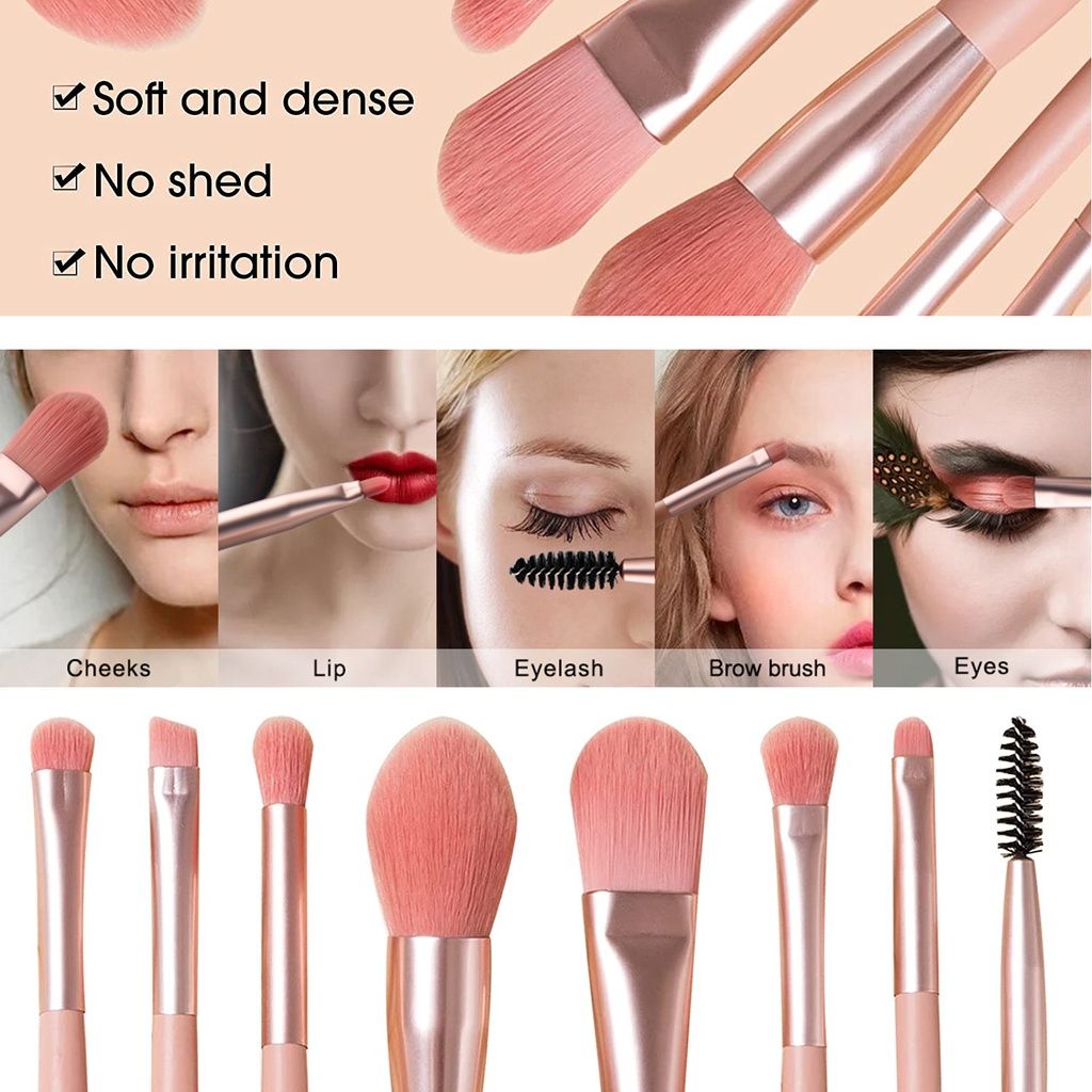 2 colors, 8 different shape brush heads. Suitable for loose powder, blush, foundation, eyeshadow, eyebrows, lips, excess powder and other eyes, face makeup! Man-made fiber hair! Lightweight, comfortable, OPP ziplock bagsItem Type: Makeup BrushBrush Material: Soft Synthetic Fiber / Aluminum Tube / Plastic HandlePackage includes: Foundation Brush, Powder Brush, Lip Brush, Mascara Brush, Large Eyeshadow Brush, Small Eyeshadow Brush, Eyebrow Brush, Eyelash Brush, etc.Package included: 8 makeup brushes