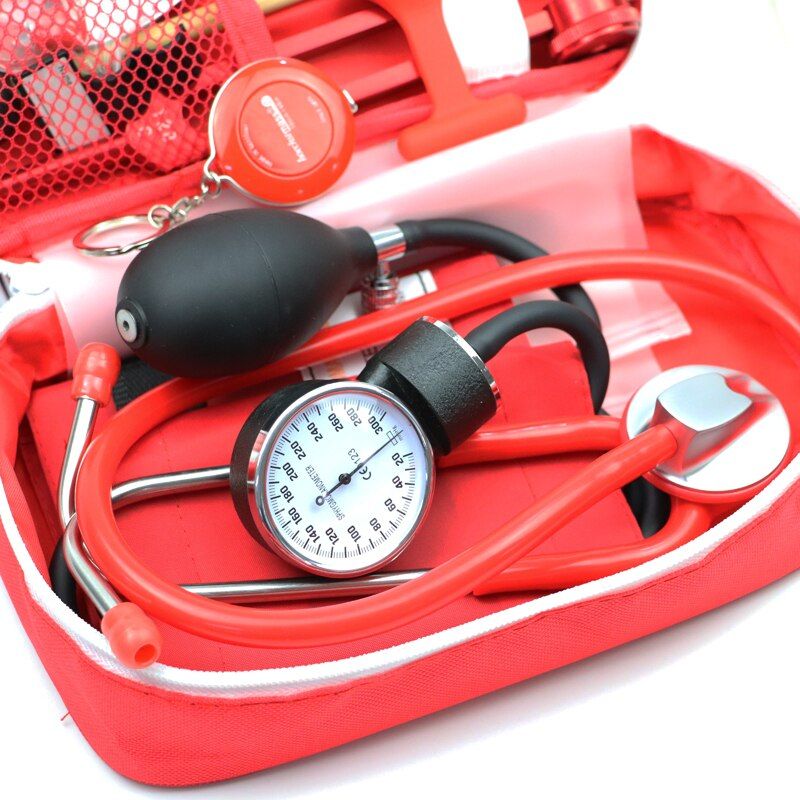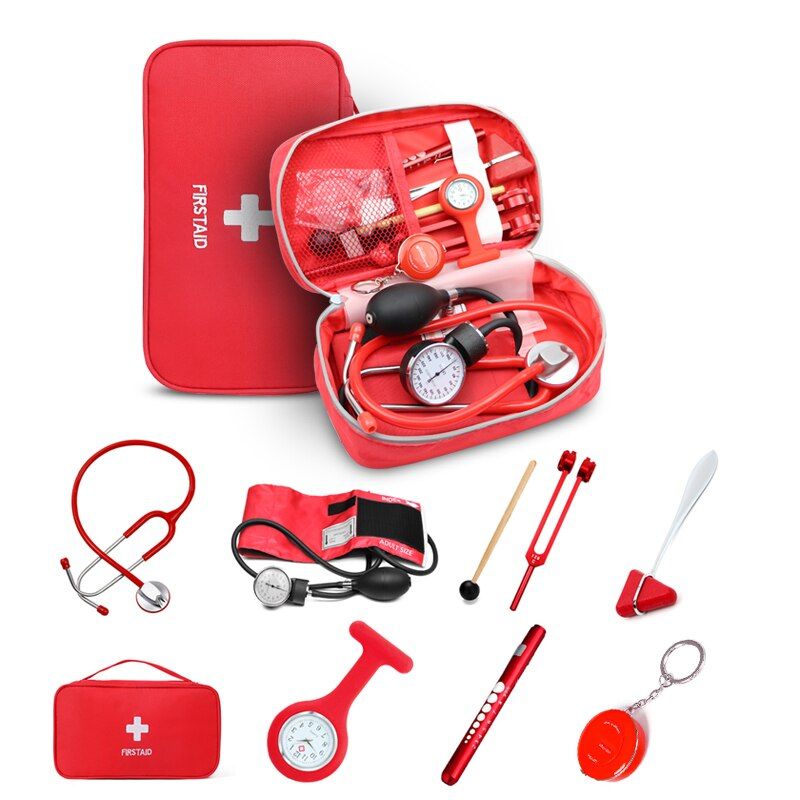 8PCS Set Medical Storage Kit Health Bag with Stethoscope Manometer Tuning Fork Reflex Hammer LED First Aid Penlight Torch: