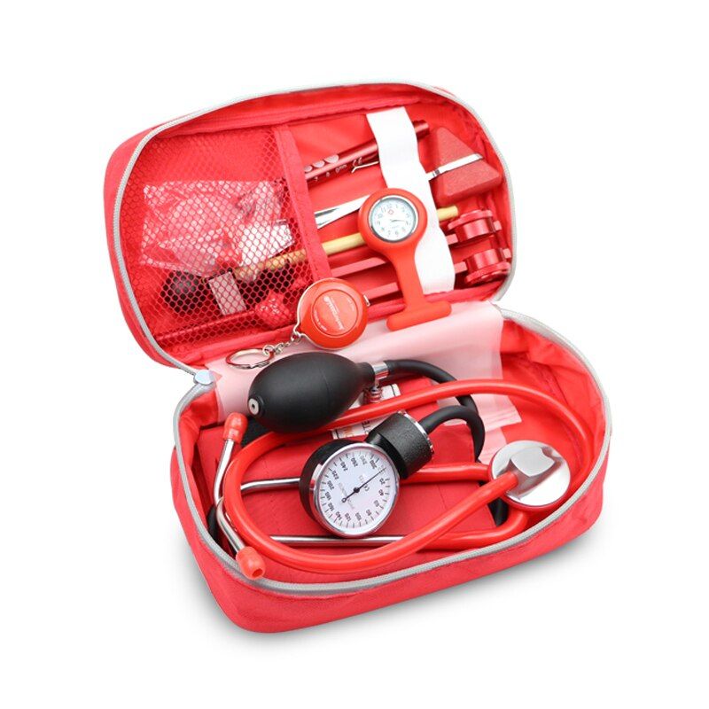 1X 8PCS Set Medical Storage Kit Health Bag with Stethoscope Manometer Tuning Fork Reflex Hammer LED First Aid Penlight Torch