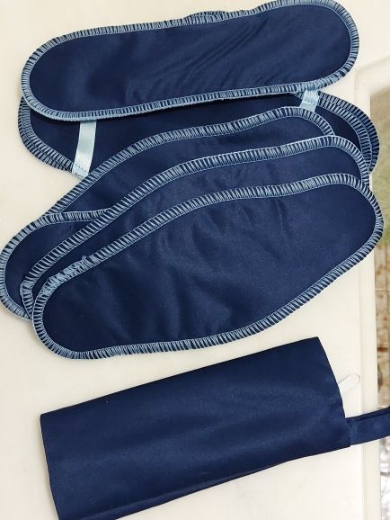 8 pieces set5 pcs Reusable Cloth Menstrual Pads (3pcs 22.5*9.5cm pads, 2pcs 22.5*6.5cm); 2 pcs pad cover (23.5*17cm). 1 pc Mini Wet Bag (13.5*18cm)